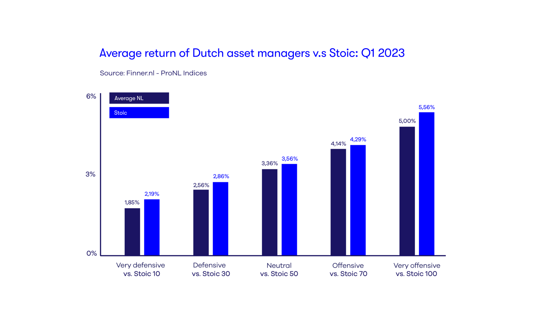 In the first quarter of 2023, independent comparison site Finner.nl once again mapped the returns of the average Dutch asset manager. As stock prices recovered, everyone showed positive returns. But who did better? Stoic, or the rest of the Netherlands?
