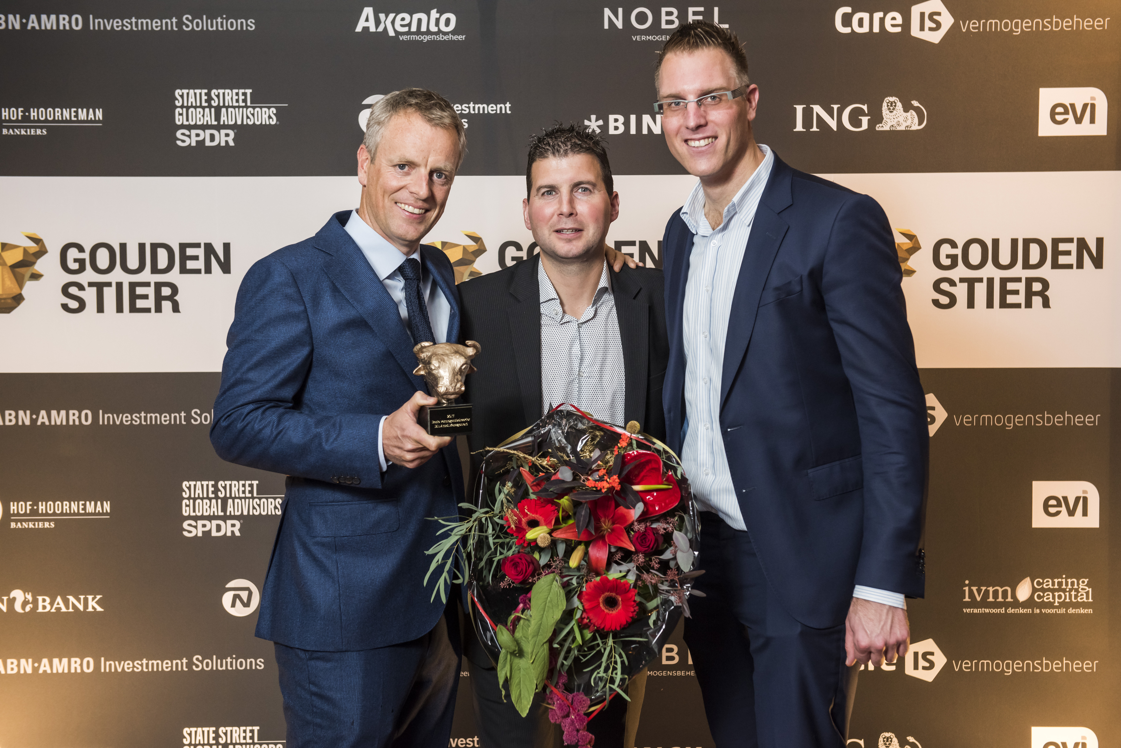De Gouden Stieren zijn in feite de ‘Oscars van de Beleggerswereld’. Elk jaar worden tijdens een feestelijke avond in de Amsterdamse Posthoornkerk prijzen uitgereikt aan de beste bedrijven en mensen in de beleggerswereld. Vorig jaar eindigde wij als Blu Asset Management met een mooi juryrapport op de tweede plaats. Maar dit jaar hebben we de trofee naar huis genomen: we zijn de winnaar van de Gouden Stier 2017 in de categorie 'beste vermogensbeheerder'. Voor ons een fantastische motivatie om door te gaan op de ingeslagen weg: ultiem gespreide portefeuilles opbouwen die belegd zijn in de hele wereldeconomie, tegen zo laag mogelijke kosten. Doel: onze klanten tegen emoties in bescherming nemen en voor hen het beste rendement op de lange termijn realiseren.